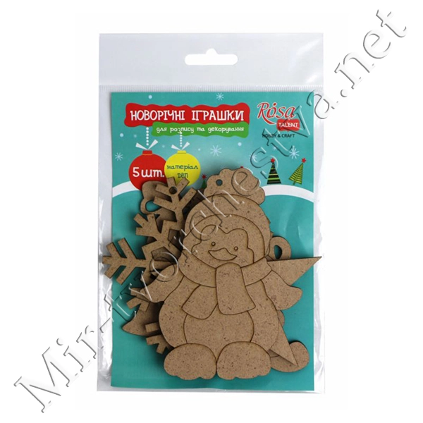 Набор Новогодних игрушек для росписи и декорирования №2, 5шт, ДВП, ROSA TALENT