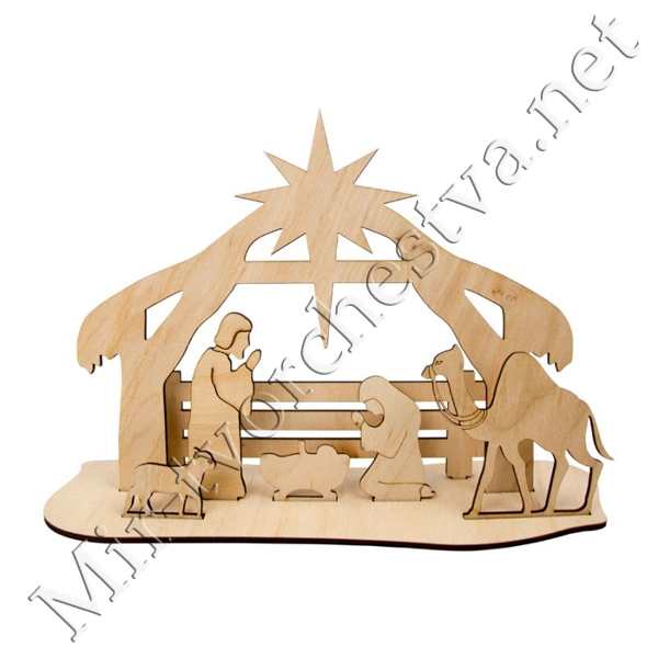 Набор заготовок на подставке „Рождественский вертеп“, фанера, 26х7х18,5 см, ROSA TALENT