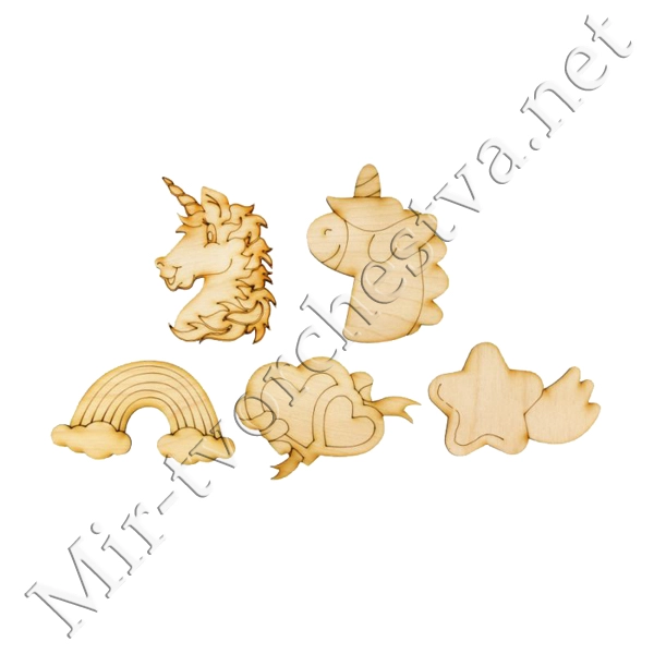 Набор заготовок для декорирования "Единороги 1", 5шт, фанера
