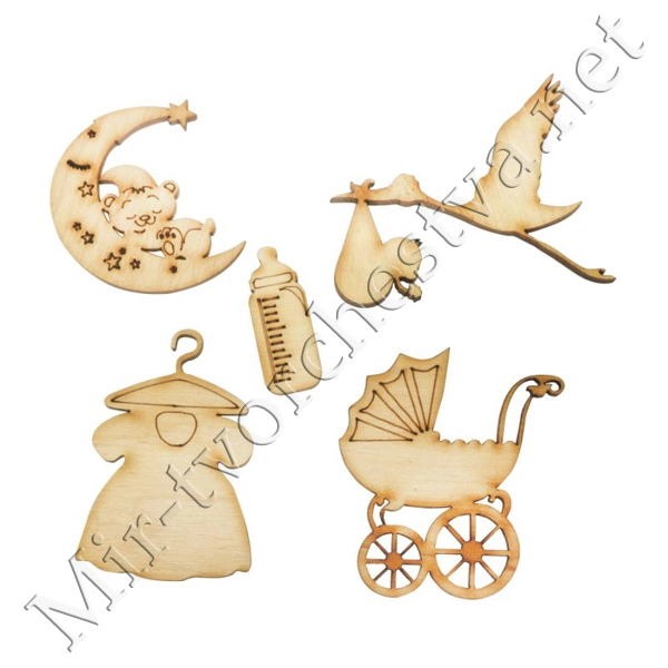 Набор заготовок для декорирования "Малыш", 5 шт, фанера