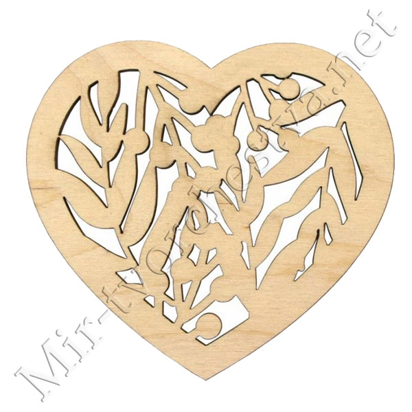 Заготовка „Цветочное сердце“ 1, фанера, 9,2х10см, ROSA TALENT