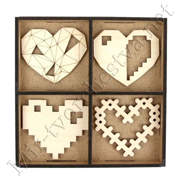 Набор заготовок „Сердца“, фанера, 13х13см, 12шт, ROSA TALENT