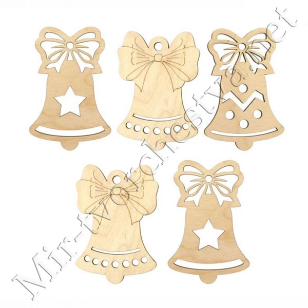 Набор заготовок „Колокольчики праздничные“, фанера, 6,6х10 см, 5 шт, ROSA TALENT