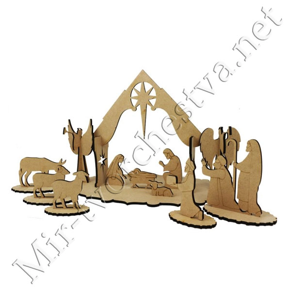 Набор заготовок на подставке „Рождественский вертеп большой“, МДФ, 50,3х31,1х33,7см, ROSA TALENT