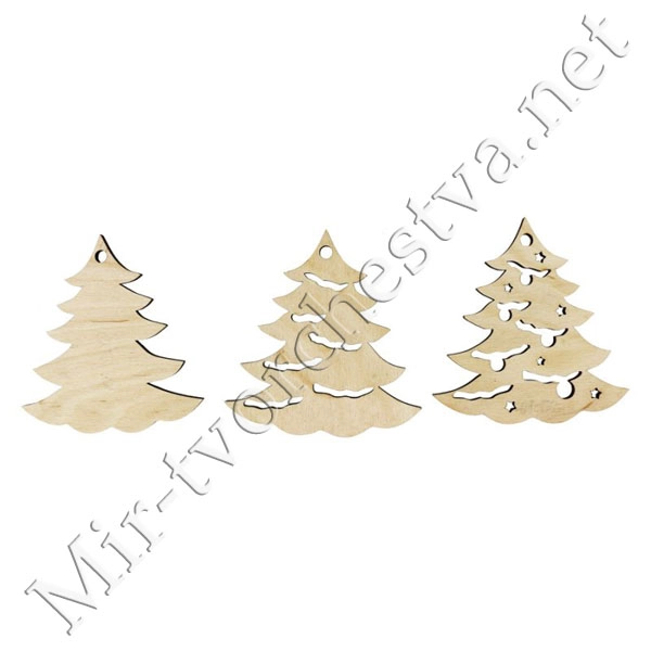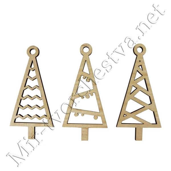 Набор заготовок „Елки с орнаментом“, фанера, 9,6х10см, 3шт, ROSA TALENT