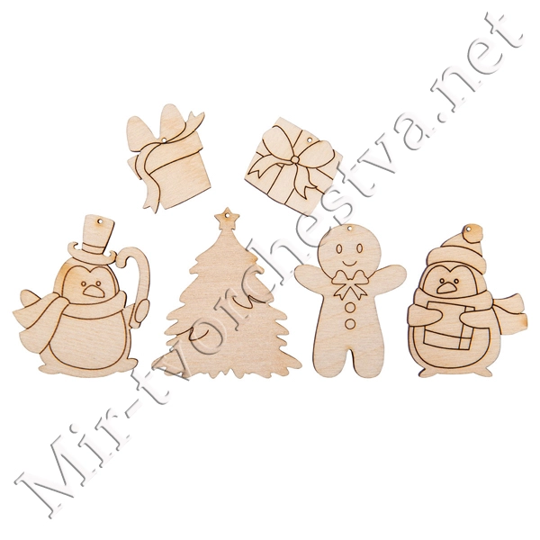 Заготовка для декорирования ВД-1131 (НГ) Мини набор "Пингвинчики" фанера, 5.6x5.5x0.3см 0.3 см, Mr. Carving