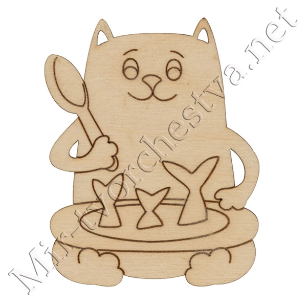 Заготовка для декорирования ВД-896 Подвеска " Кот с ухой", фанера 8,5-6,8 см, Mr. Carving