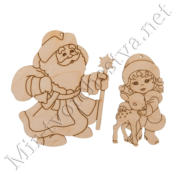 Заготовка для декорирования ВД-1006 Набор "Дедушка мороз со Снегурочкой" фанера 12x6.2x0.3 см 0.3 см, Mr. Carving