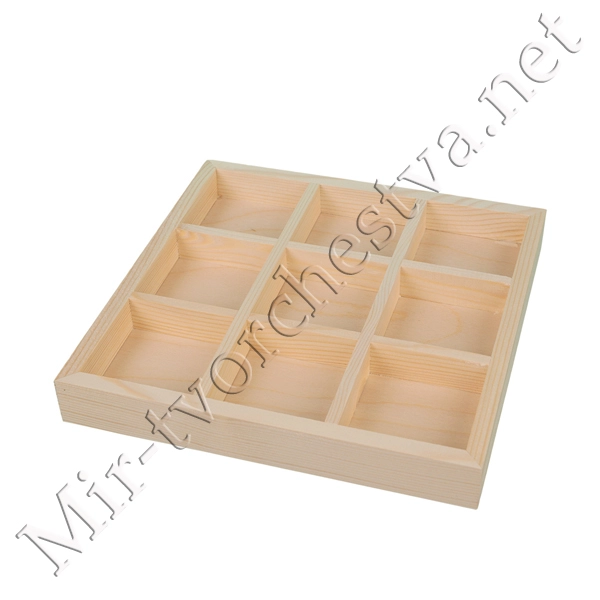 Заготовка для декорирования ВД-364 Органайзер 9 ячеек, сосна 22x22x3.3см, Mr. Carving