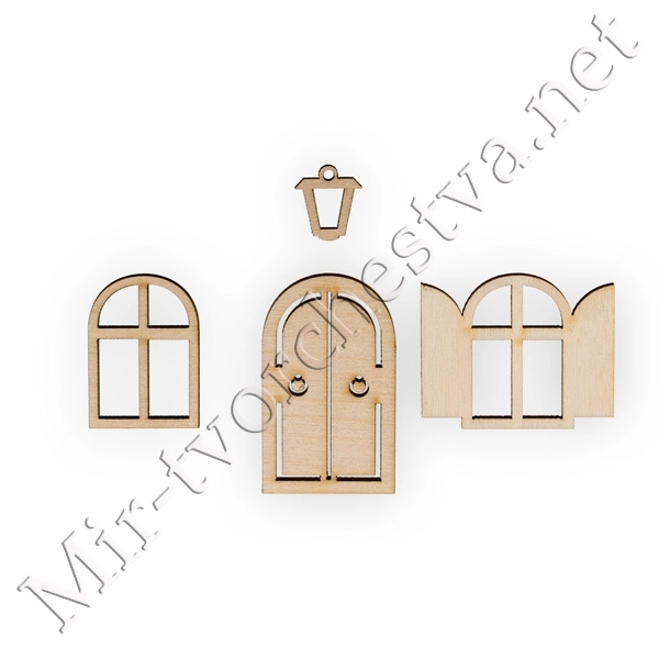 Заготовка для декорирования ВД-521 Мини-набор фанера 1x4x0.3 см 0.3 см №1 "Окна, фонарь и дверь", Mr. Carving