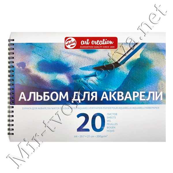 Альбом для акварели 200гр/м.кв А4 20л спираль по 1 стороне, Art Creation