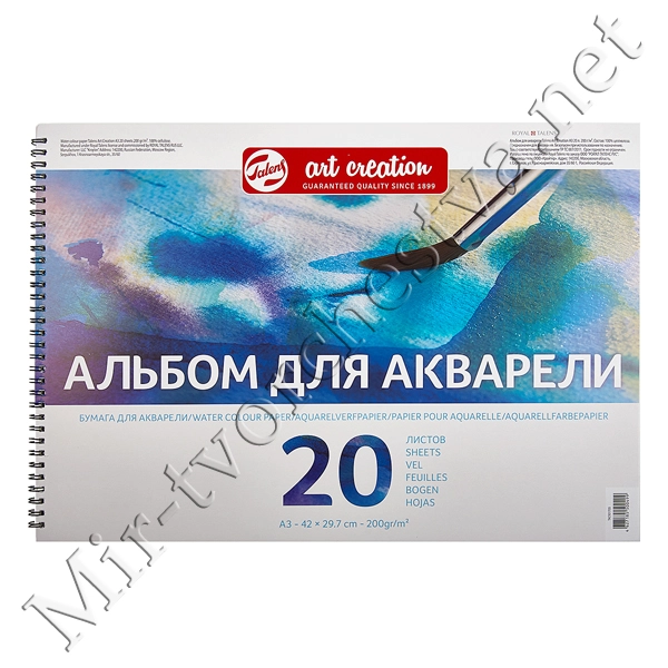 Альбом для акварели 200гр/м.кв А3 20л спираль по 1 стороне, Art Creation