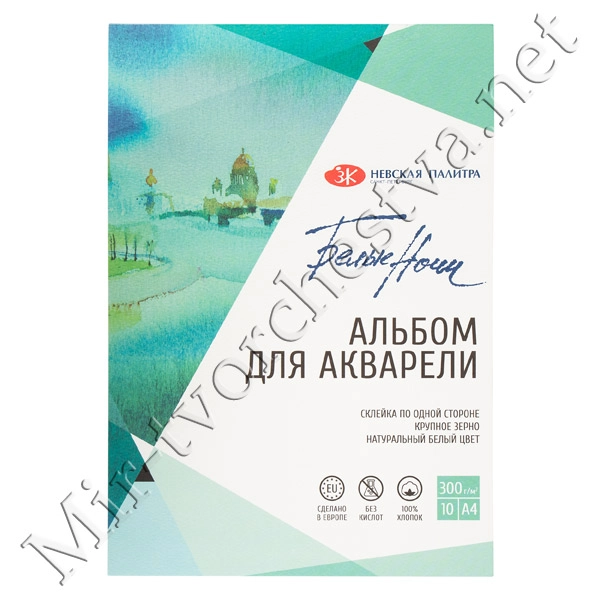 Альбом-склейка для акварели, А4, 280г/м2, 15 листов, 100% целлюлоза, среднее зерно, (en), Белые Ночи