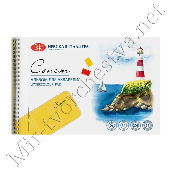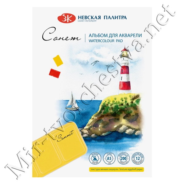 Альбом-склейка для акварели, 200 г/м2, А4, 12 л, 100% целлюлоза, яичная скорлупа, (ru), Сонет