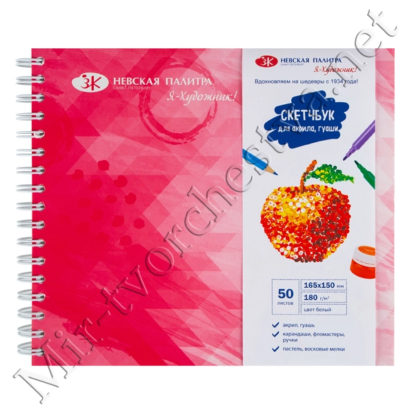 Скетчбук на пружине, 180 г/м2, 165x150 мм, 50 л, офсет, обечайка, подложка, Я-Художник!