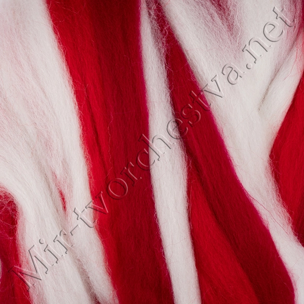 Шерсть для валяния полутонкая (микс), Отбелка/Винный/Красный (6027), 50г, Gamma