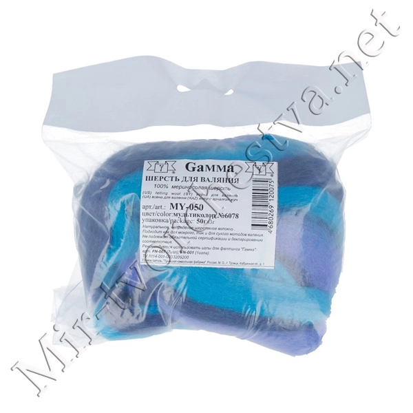 Шерсть для валяния полутонкая, Л.Колокольчик (0070), 50г, Gamma