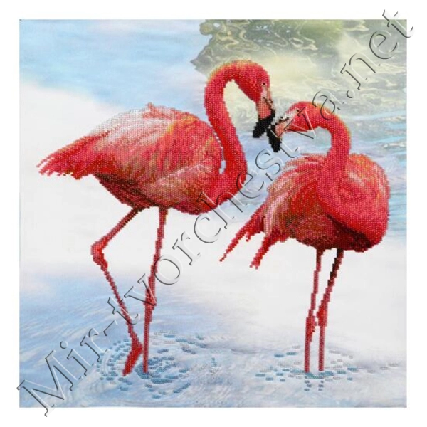 Вышивка бисером (Т-0862), Разовые фламинго, 38х38см