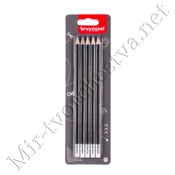 Набор чернографитных карандашей 5 карандашей HB с ластиком в блистере, Bruynzeel