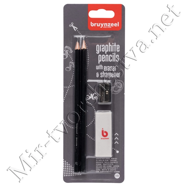 Набор чернографитных карандашей 2 карандаша HB + ластик + точилка в блистере, Bruynzeel