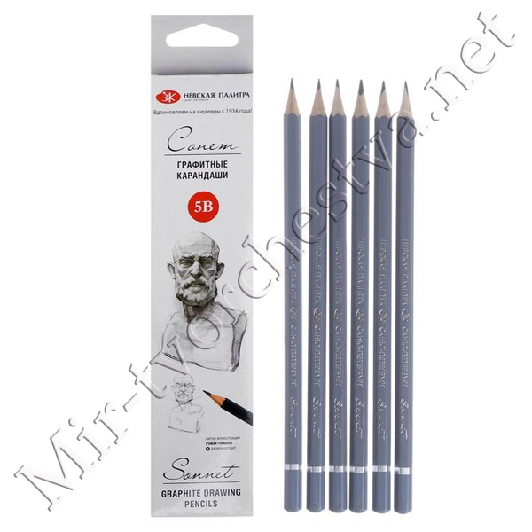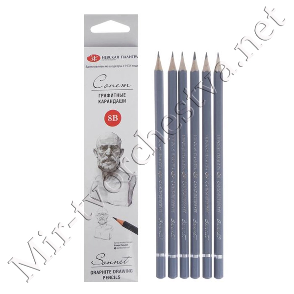 Набор чернографитных карандашей, 6 шт. (НB-8В), в картонной коробке, Сонет