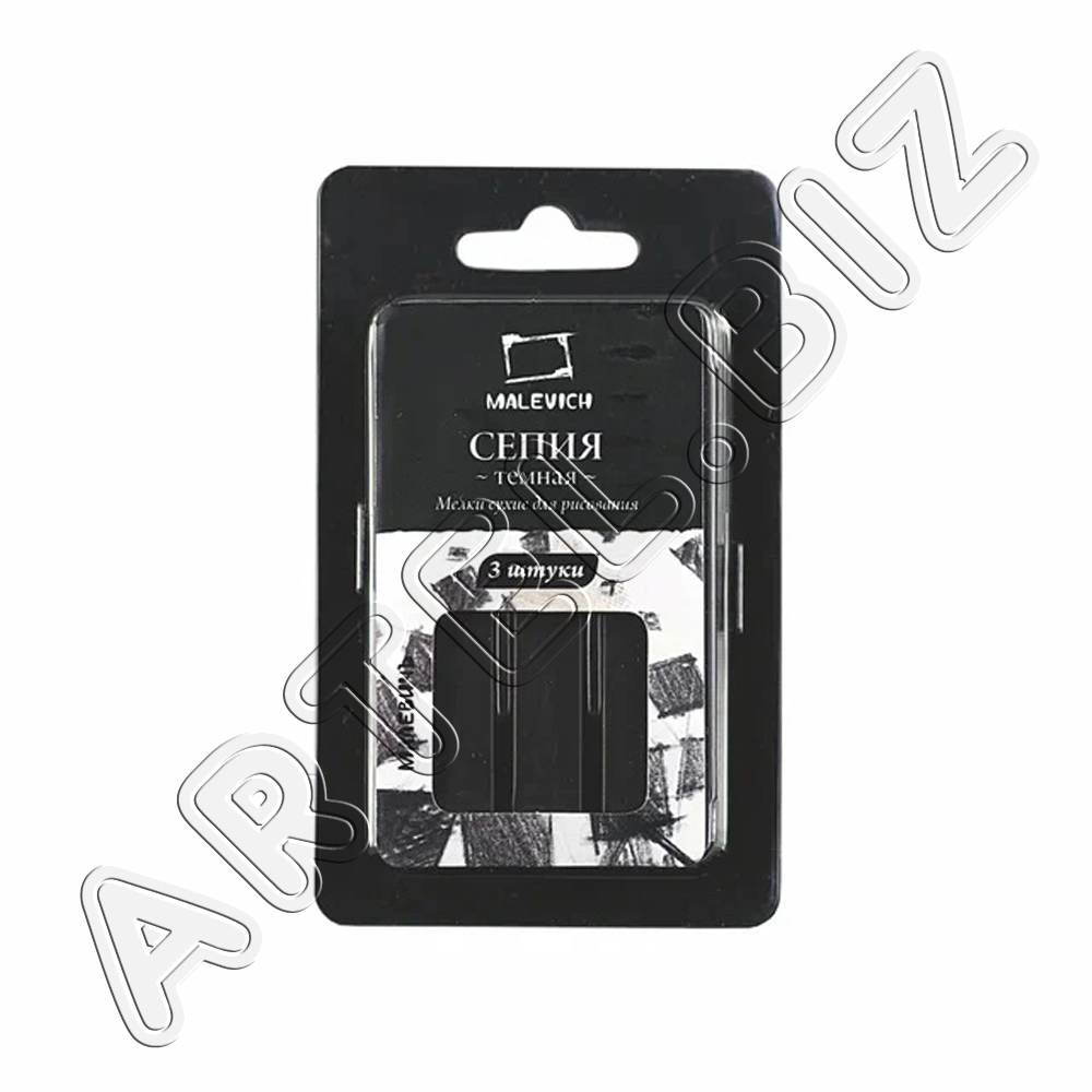 Сепия темная, набор квадратных мелков, 3 шт., Малевичъ