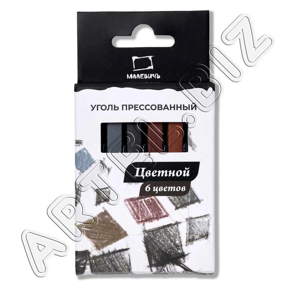 Уголь прессованный цветной ассорти, набор квадратных мелков, 6 шт., Малевичъ
