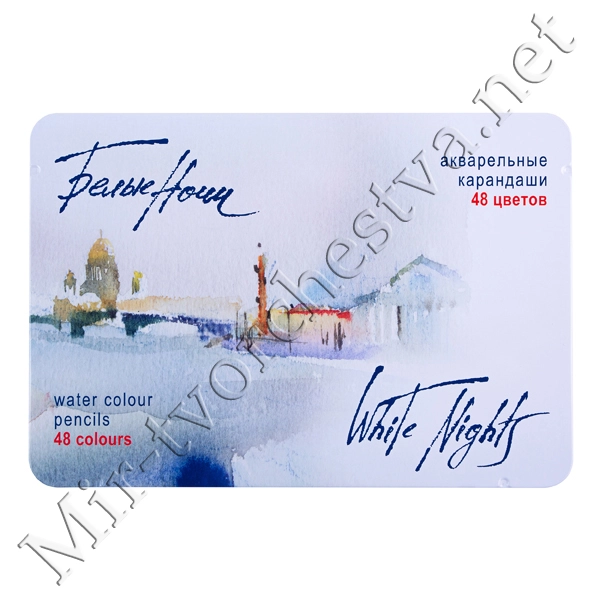 Набор акварельных карандашей, 48 цвета, в жестяном пенале, Белые Ночи