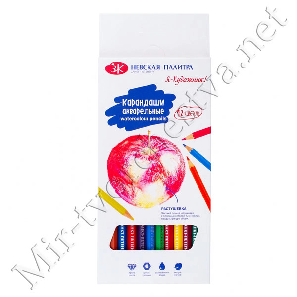 Набор акварельных карандашей, 12 цветов, в картонной коробке, Белые Ночи