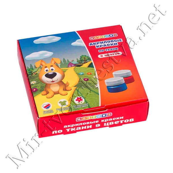 Набор акриловых красок по ткани, 9х20 мл, Цветик