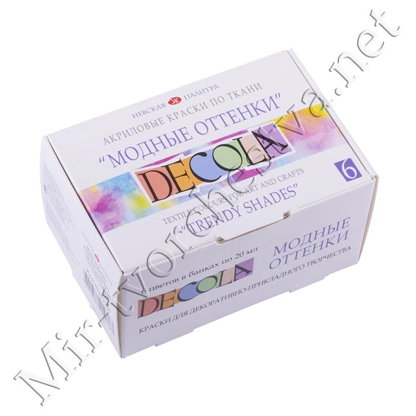 Набор акриловых красок по тканям "Модные оттенки", 6x20мл, Decola