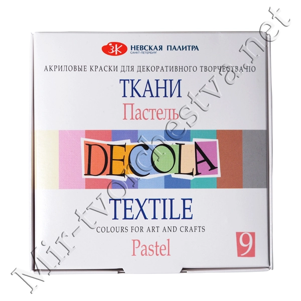 Набор акриловых красок по ткани "Пастель", 9х20мл, Decola