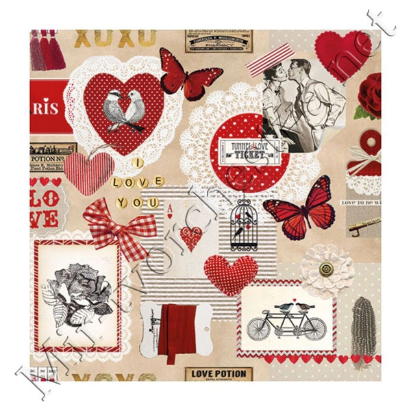 Декупажная салфетка "Love Heart", 33*33 см, 18,5 г/м2, Ambiente