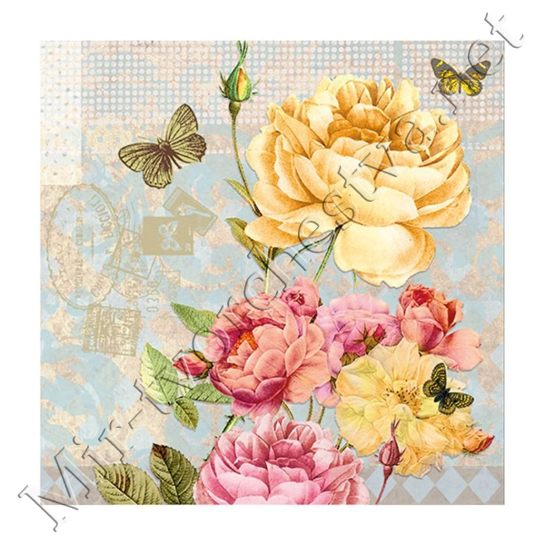 Декупажная салфетка "Цветы и бабочки", кремовые, 33*33 см, 18,5 г/м2, Abiente