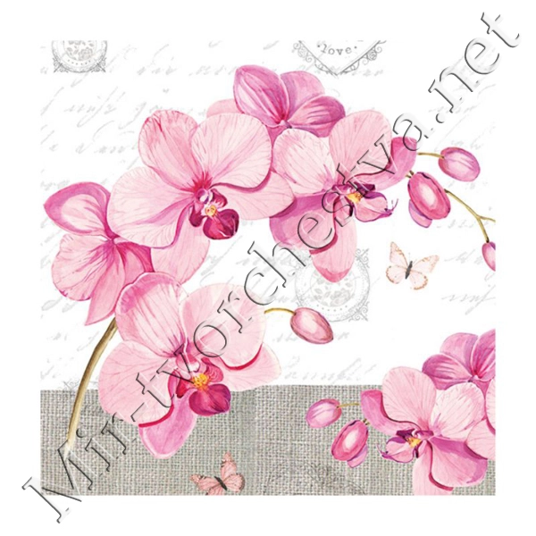 Декупажная салфетка "Веточка орхидеи", 33*33 см, 18,5 г/м2, Abiente