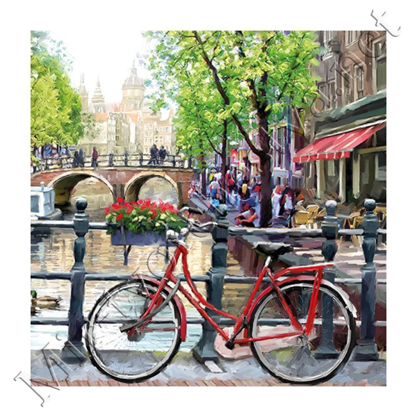 Декупажная салфетка "Прогулка на велосипеде", 33*33 см, 18,5 г/м2, Abiente