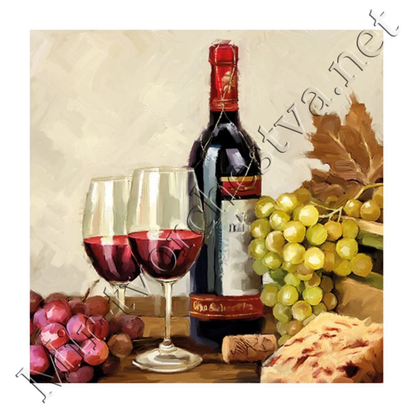 Декупажная салфетка "Вино", 33*33 см, 18,5 г/м2, Abiente