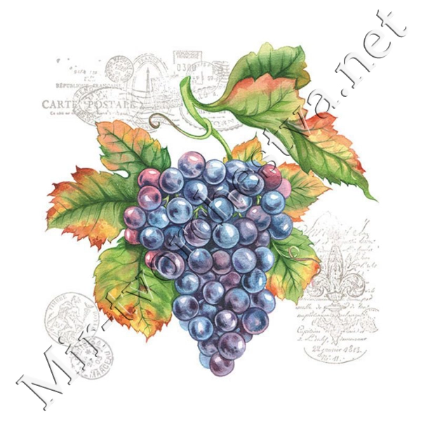 Декупажная салфетка "Виноградная ветвь", 33*33 см, 18,5 г/м2, Abien