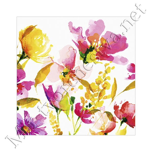 Декупажная салфетка "Акварельные цветы", цветные, 33*33 см, 17,5 г/м2, ti-flair