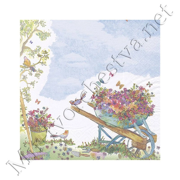 Декупажная салфетка "Тележка с цветами", 33*33 см, 17,5 г/м2, ti-flair