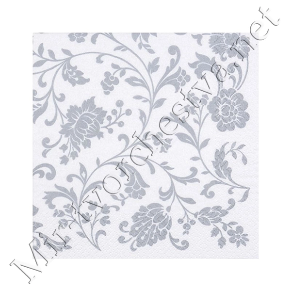 Декупажная салфетка "Орнамент цветы", серебро, 33*33 см, 17,5 г/м2, ti-flair