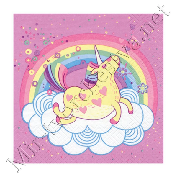Декупажная салфетка "Единорог", розовые, 33*33 см, 17,5 г/м2, ti-flair