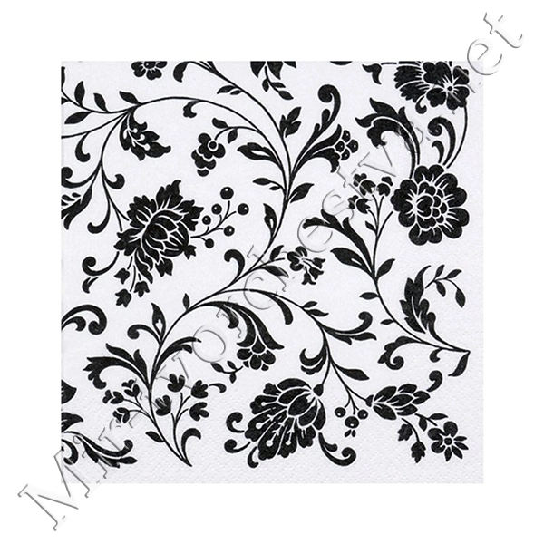 Декупажная салфетка "Орнамент цветы", черные, 33*33 см, 17,5 г/м2, ti-flair