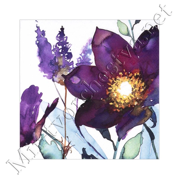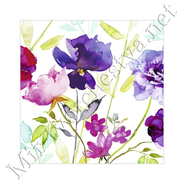 Декупажная салфетка "Акварельные цветы", фиолетовые, 33*33 см, 17,5 г/м2, ti-flair