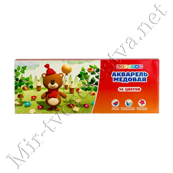 Набор акварели Медовой, картонная упаковка, 14 цветов, Цветик