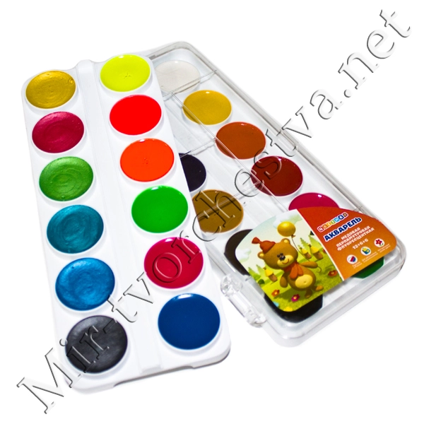 Набор акварели, Часы, пластиковая коробка, 12 цветов, Цветик