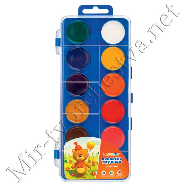 Набор акварели Медовой, картонная упаковка, 12 цветов, Цветик