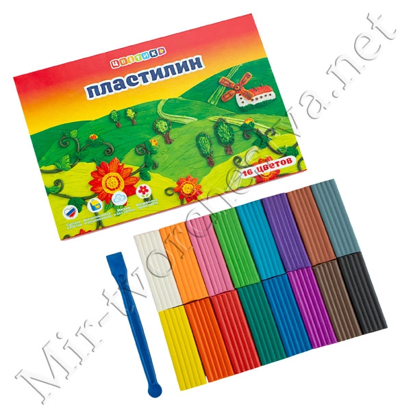 Набор пластилина со стеком, 16 цветов, 320г, Цветик