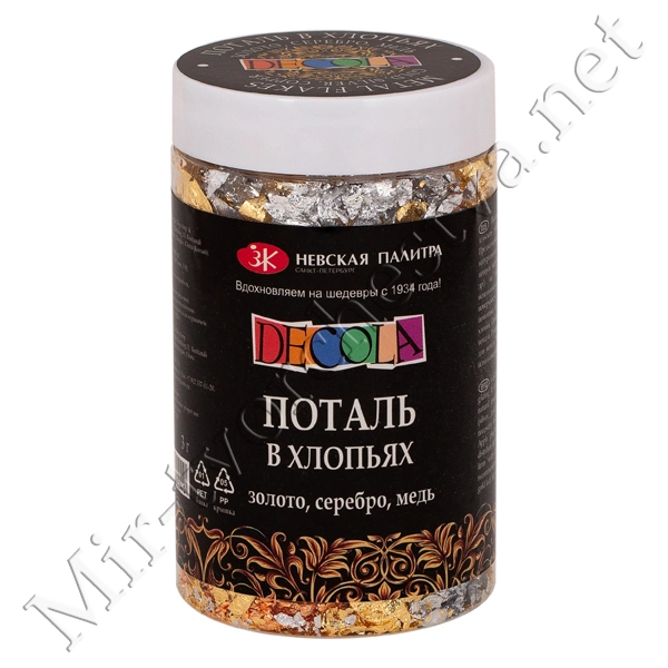 Поталь в хлопьях, 3 г, золото/серебро/медь, Decola