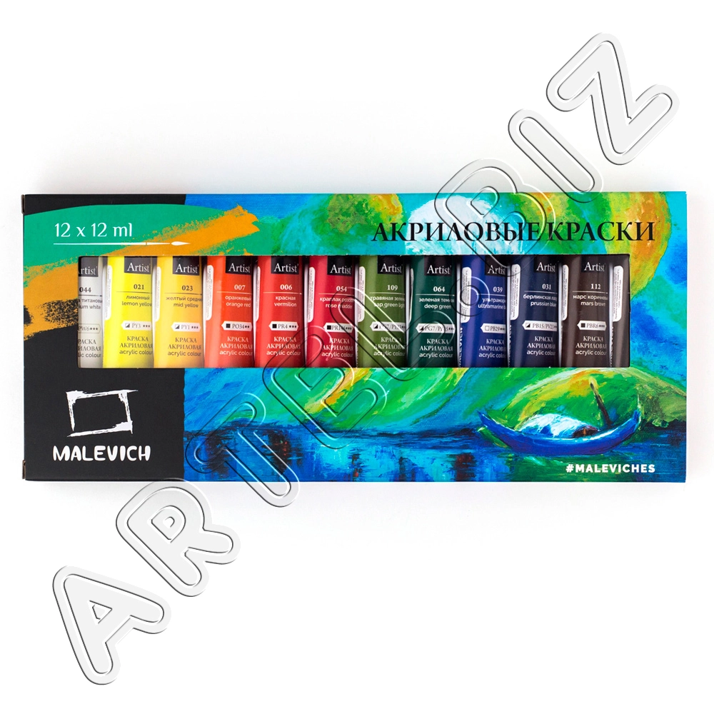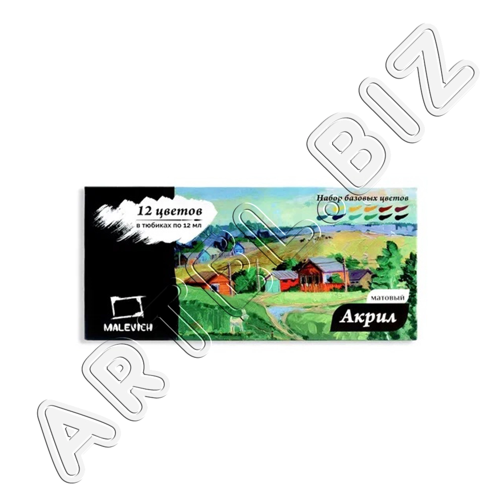 Набор матовых акриловых красок, 12 цв., Малевичъ